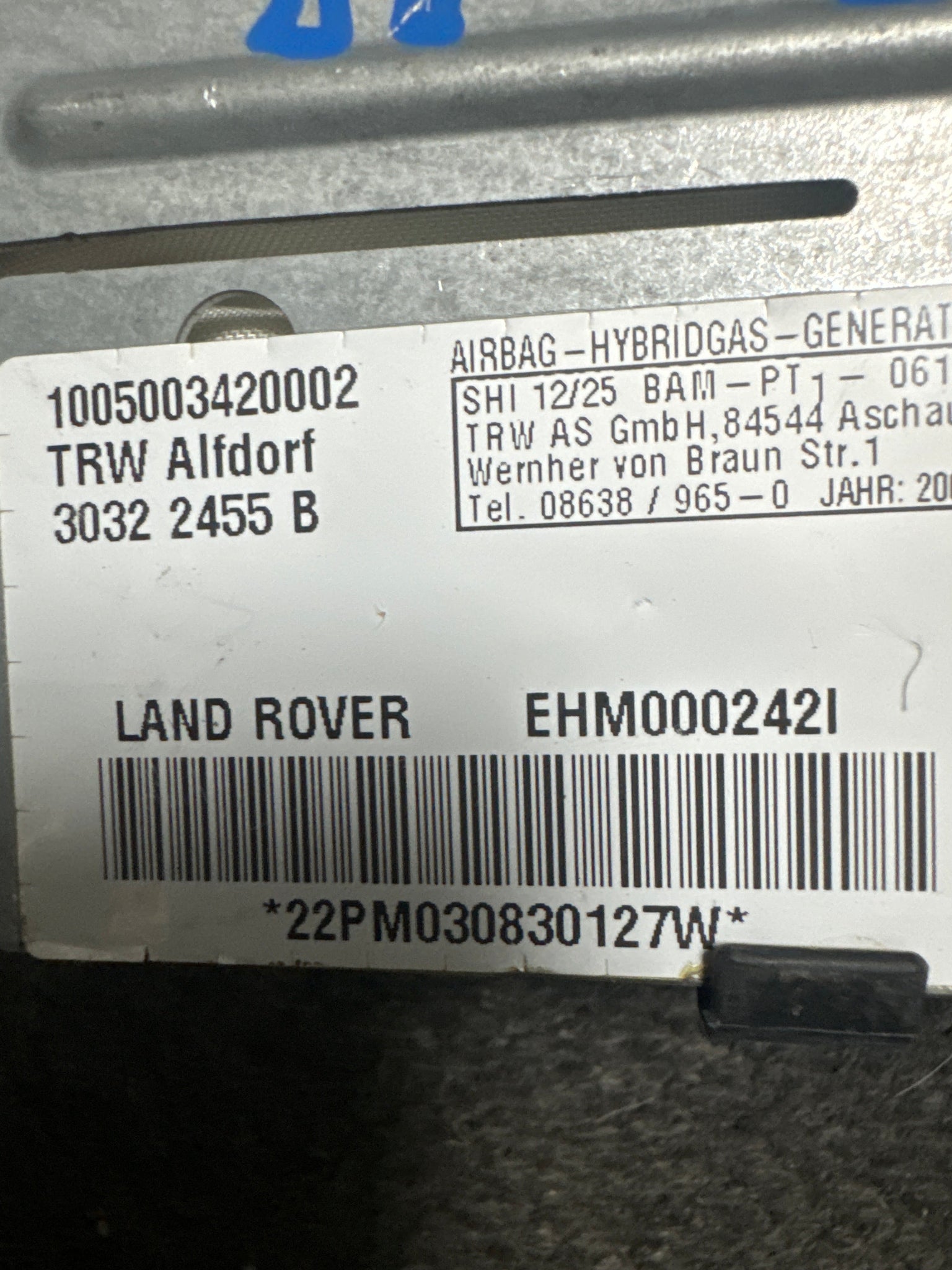 2003-2009 LAND ROVER RANGE ROVER L322 RIGHT PASSENGER REAR ROOF CURTAIN AIRBAG (RH) (P)