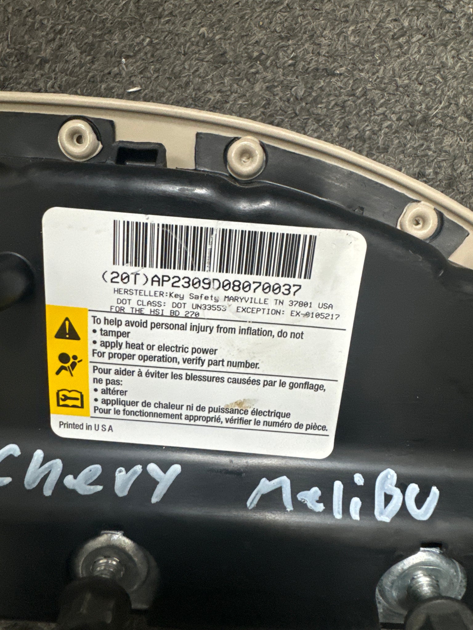 2006-2009 CHEVROLET MALIBU FRONT PASSENGER SEAT AIRBAG (RH) (P) TAN