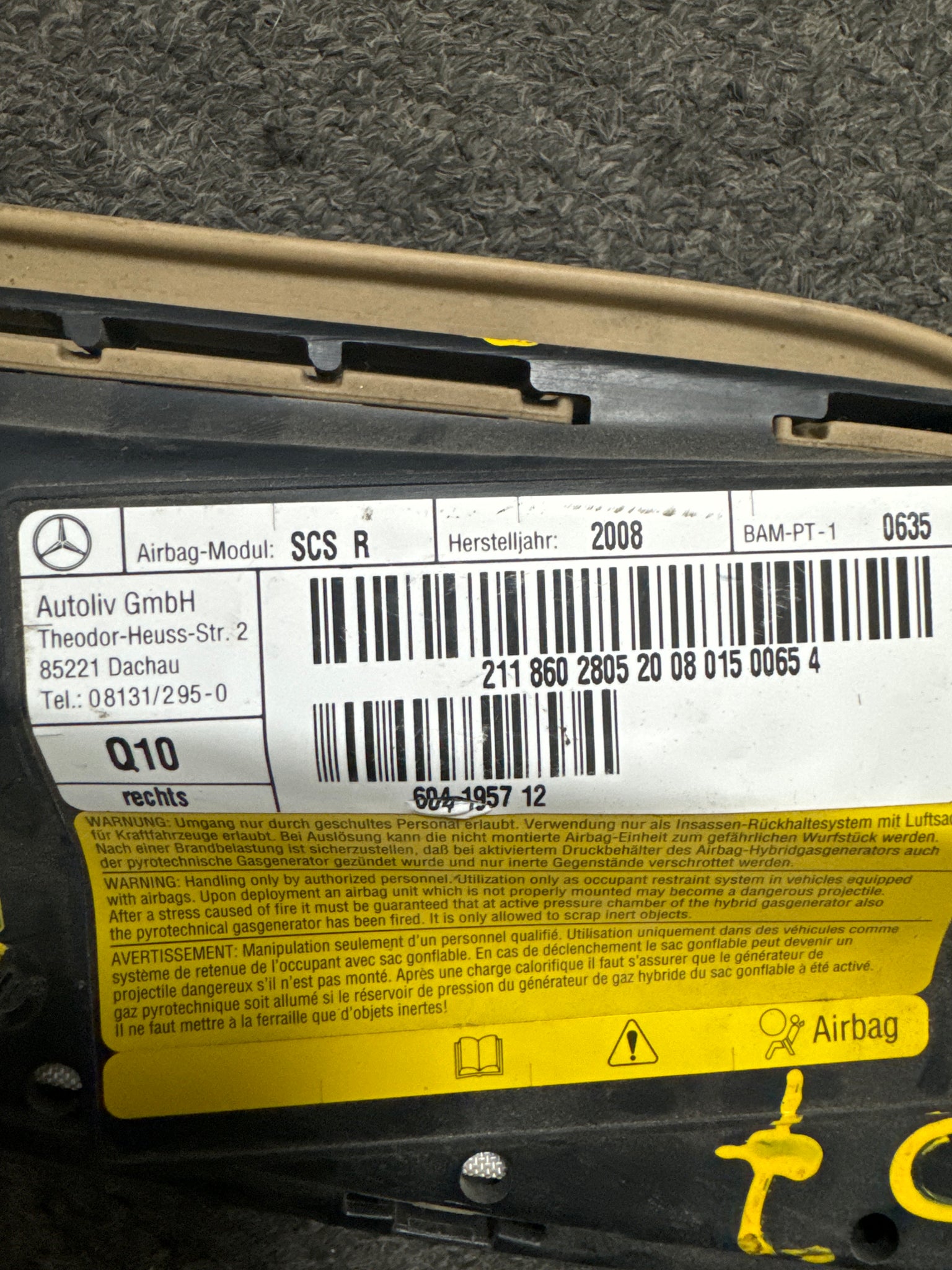 2006-2011 MERCEDES W211 E350 CLS500 FRONT RIGHT SEAT AIRBAG (RH) (P) TAN