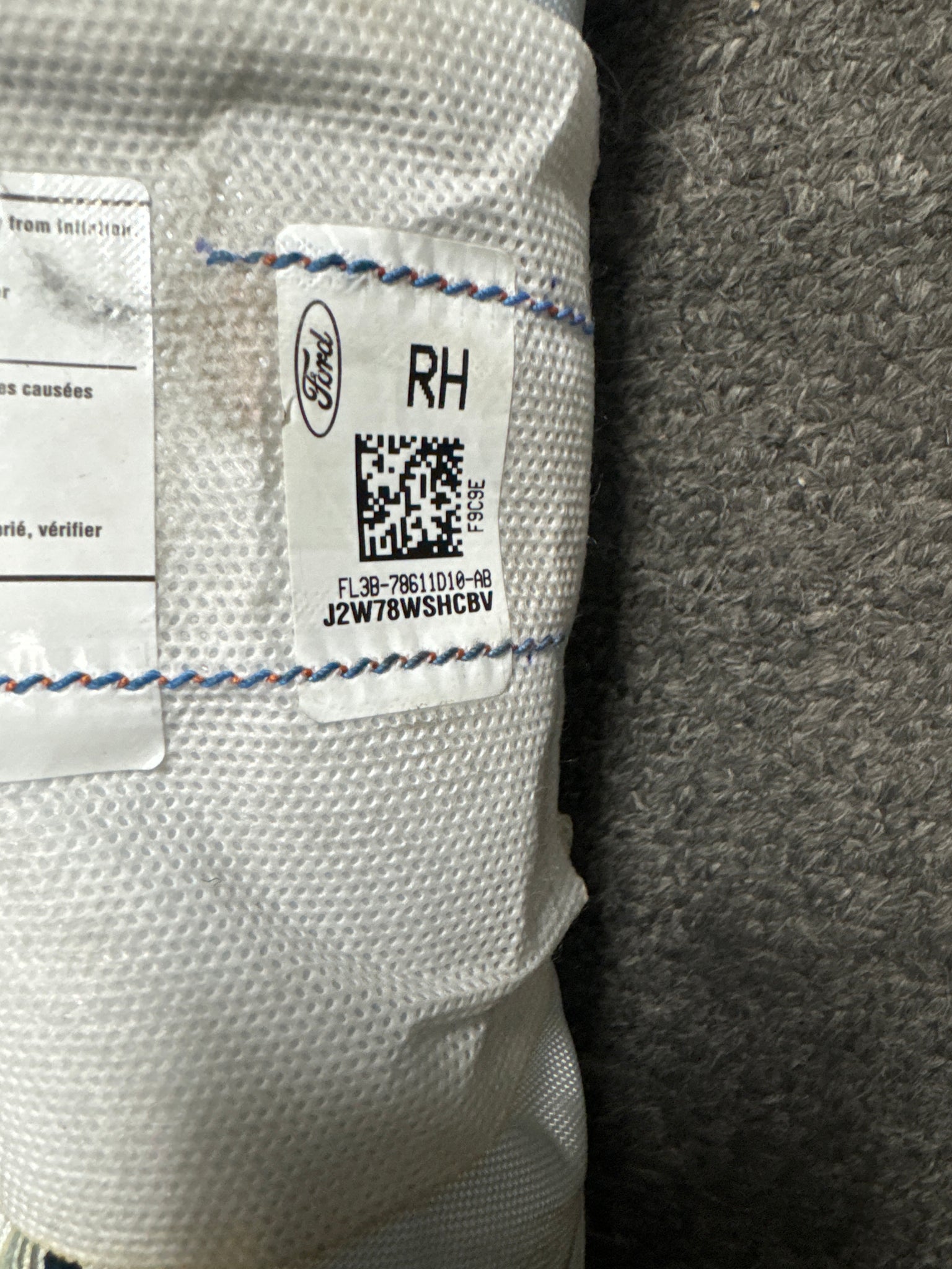 2015-2020 FORD F150 RIGHT PASSENGER SEAT AIRBAG (RH) (P)